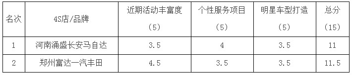 按照慣例,還是從排名倒數(shù)第一(黑榜第一名):河南涌盛長安馬自達(dá)4S店,不過11分已經(jīng)是不錯(cuò)的成績了,只怪其他店整體水平太高,就認(rèn)慫吧~