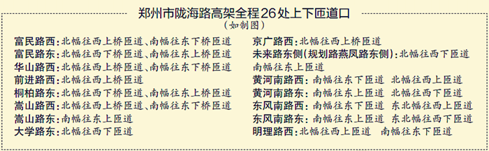 需要注意的是,由于地面一層、部分立交及上下橋匝道尚未完工,還不能完全發(fā)揮分流疏導(dǎo)的作用,高架開通后,嵩山路、大學(xué)路、京廣路、未來路、黃河南路、東風(fēng)南路、明理路等下橋匝道車流會(huì)增大,給地面交通帶來沖擊,在部分區(qū)域可能會(huì)出現(xiàn)交通擁堵,到時(shí)可能會(huì)出現(xiàn)上橋容易下橋難的情況。