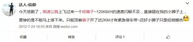其實微博上關(guān)于高速公路上撞上紙箱子的事件,屢次發(fā)生:
