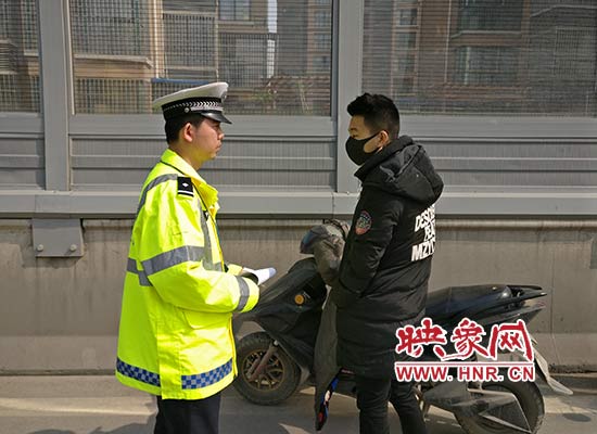 映象網(wǎng)快訊(記者 巫曉 文/圖)天氣轉(zhuǎn)暖,選擇非機(jī)動(dòng)車出行人數(shù)增加。但是不少非機(jī)動(dòng)車司機(jī)鋌而走險(xiǎn),肆無忌憚行駛在高架橋上,十分危險(xiǎn)。4月12日,記者跟隨鄭州交警支隊(duì)高架機(jī)動(dòng)隊(duì)一起在隴海高架紫荊山路下橋口查處非機(jī)動(dòng)車違法行為,一個(gè)半小時(shí)時(shí)間內(nèi)15輛非機(jī)動(dòng)車被處罰。