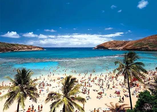 杜夢灣,關(guān)島最具人氣的地方,它地處關(guān)島的西北部,從高空俯瞰猶如一道彎月。在這條長達4公里的海岸線上,因為有防波堤的存在,這里可以有著最美的、最風(fēng)平浪靜的海濱風(fēng)景。藍天白云、水清沙幼,豐富的水上運動和沙灘活動,構(gòu)成了最完美的度假勝地。