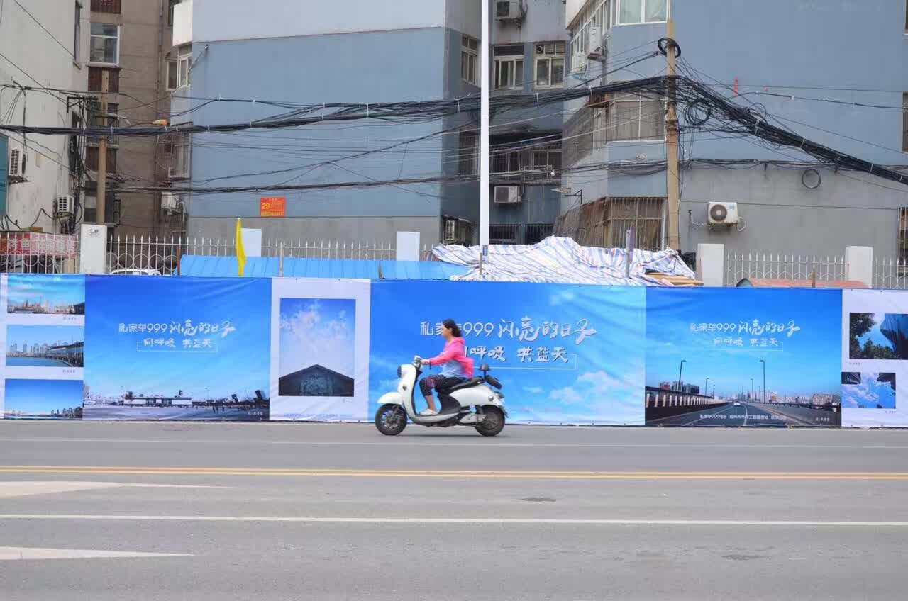“這圍擋挺漂亮的,藍天白云的,看著心情也挺好的?!?/p>
