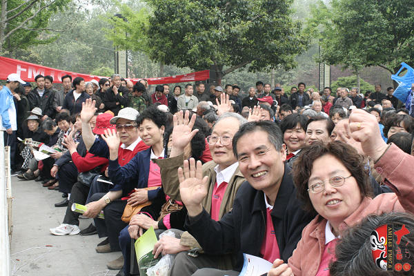 4月17日上午,在位于洛陽市中心、以體現(xiàn)周朝文化為主題的周王城廣場(chǎng),“周公營建洛邑”雕塑旁,主辦方舉辦了一場(chǎng)別開生面的戲曲演唱會(huì)。來自鄭州、洛陽兩地的豫劇名家張?jiān)聵s、曾廣蘭、趙曉梅、王藝紅,著名演員徐俊霞、陳大華、劉亞林、曲韻、劉海功、沈萍,梨園春明星擂主張艷紅、謝憲笙等為來自全省各地的戲曲廣播《戲迷俱樂部》百余位戲迷和現(xiàn)場(chǎng)的廣大觀眾奉獻(xiàn)了精彩的戲曲唱段。藝術(shù)家們演唱的《洛陽橋》、《秦雪梅》、《七品芝麻官》、《對(duì)花槍》、《拷紅》、《收姜維》、《朝陽溝》、《倒霉大叔的婚事》、《小白鞋說媒》、《紅菊》等不同劇種、不同流派、不同行當(dāng)?shù)哪捴巳丝诘某?,博得觀眾一陣又一陣的掌聲,河南戲曲廣播主持人媛媛、李鋮表演的雙簧妙趣橫生,引得觀眾樂不可支。