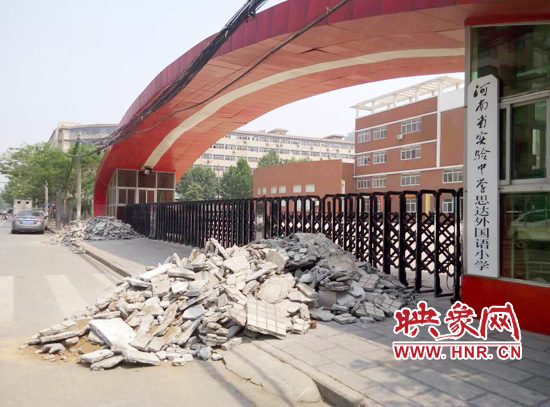 25日下午,映象網(wǎng)記者來到河南省實(shí)驗(yàn)中學(xué)思達(dá)外國(guó)語(yǔ)小學(xué)門口發(fā)現(xiàn),前幾天已經(jīng)清理干凈的校門口再次被建筑垃圾所包圍。