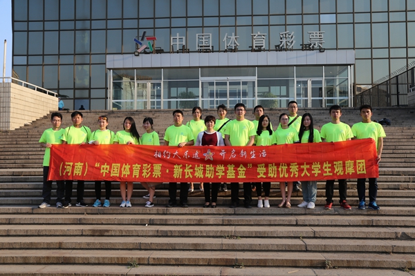 2017年,首批得到“中國(guó)體育彩票·新長(zhǎng)城助學(xué)基金”資助的信陽(yáng)師范學(xué)院2013級(jí)優(yōu)秀大學(xué)生畢業(yè)之際,河南省體育彩票管理中心還邀請(qǐng)其中的部分學(xué)生代表,在老師的帶領(lǐng)下到北京觀摩中國(guó)體育彩票現(xiàn)場(chǎng)開獎(jiǎng),在他們踏入社會(huì)進(jìn)入工作崗位之前,開闊眼界并深入了解和見證中國(guó)體育彩票作為國(guó)家公益彩票的公益屬性和公信力。