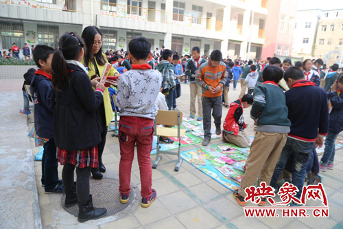 映象網(wǎng)教育頻道訊(記者 李照華 通訊員 張俊杰)為培養(yǎng)孩子們節(jié)約資源、愛護(hù)環(huán)境的意識和良好的行為習(xí)慣,讓學(xué)生們體驗“公平買賣”和“勞動快樂”,結(jié)識更多的朋友,本著“你的多余,我的需要”理念,通過舊書循環(huán)利用,以“書換書”和“錢買書”的方式,推廣循環(huán)經(jīng)濟(jì)、生態(tài)環(huán)保的思想。經(jīng)開區(qū)外國語小學(xué)經(jīng)過前期精心的準(zhǔn)備,于2015年11月4日下午,順利組織開展了主題為“悅分享 越快樂”的圖書“跳蚤市場”活動,讓學(xué)生把家中閑置的圖書在跳蚤市場活動中與同學(xué)等價交換或錢物交換。