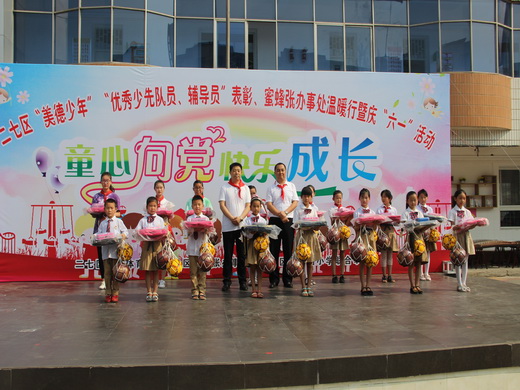 5月31日,二七區(qū) “星級(jí)美德少年”、“認(rèn)星爭優(yōu)”活動(dòng)優(yōu)秀學(xué)校、優(yōu)秀教師、優(yōu)秀家長、“十佳少先大隊(duì)”、“十佳少先隊(duì)干”、 “十佳少先隊(duì)輔導(dǎo)員”、“百佳少先隊(duì)員”頒獎(jiǎng)儀式、蜜蜂張辦事處溫暖行暨慶“六一”活動(dòng)在鄭州市二七區(qū)京廣路小學(xué)舉行。