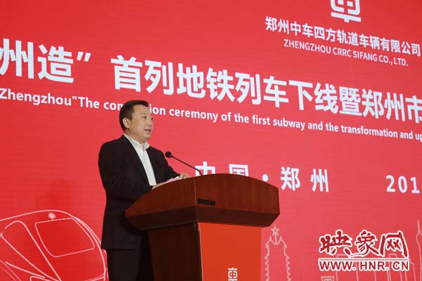 期間,河南省政府副秘書長(zhǎng)王夢(mèng)飛宣讀省委省政府賀信,中車青島四方機(jī)車車輛股份有限公司總經(jīng)理馬云雙代表投資方介紹企業(yè)產(chǎn)品產(chǎn)業(yè)情況,“鄭州造”首列地鐵列車用戶方鄭州市軌道交通有限公司黨委書記、董事長(zhǎng)、總經(jīng)理張洲致辭;鄭州市政府市長(zhǎng)程志明分別做重要講話。