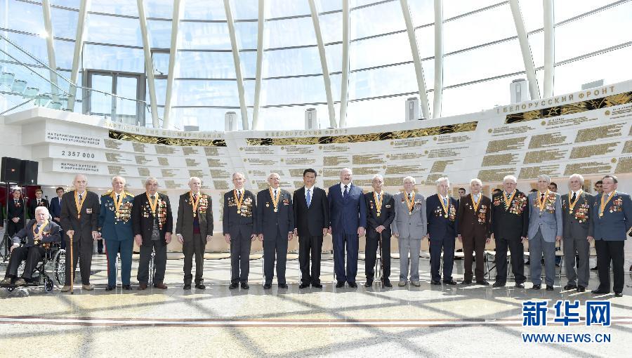 5月11日,國家主席習(xí)近平同白俄羅斯總統(tǒng)盧卡申科在明斯克衛(wèi)國戰(zhàn)爭歷史博物館會見15名白俄羅斯第二次世界大戰(zhàn)老戰(zhàn)士代表。