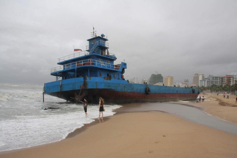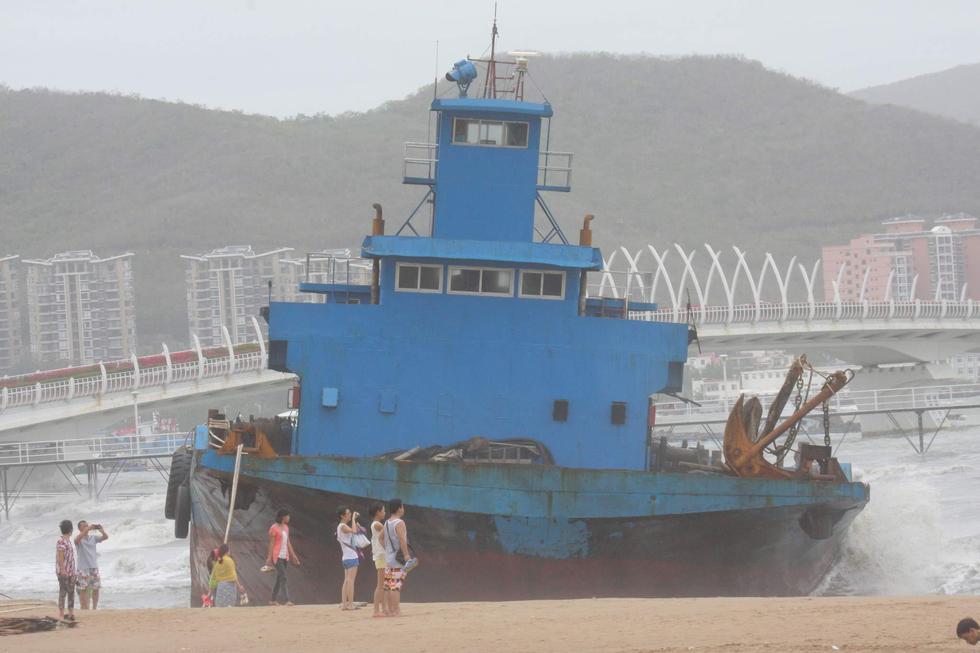 海南3艘大船被臺風“鯨魚”刮上沙灘