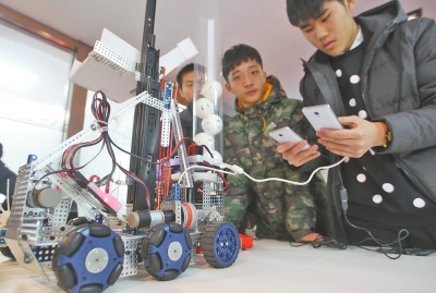 咱鄭州的學(xué)生“玩”機(jī)器人很有一手!11月23日~24日,2015世界青少年機(jī)器人邀請(qǐng)賽在北京舉行,鄭州二中8名高中生組成的隊(duì)伍“殺入”四強(qiáng),國內(nèi)排名第二,并榮獲最佳設(shè)計(jì)獎(jiǎng)。昨日,記者見到了剛剛比賽歸來的學(xué)生們和他們?cè)O(shè)計(jì)的機(jī)器人。