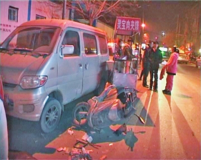 事發(fā)地點(diǎn)位于南關(guān)街與隴海路交叉口向南約100米處,事發(fā)時(shí),路邊有不少小吃攤?!爱?dāng)時(shí)豐田車自北向南行駛,先是撞了路邊停著的一輛轎車停了下來。隨后,該車又倒車,撞了路邊的兩個(gè)小吃攤。接著,該車?yán)^續(xù)前行,又蹭了我的車和另外一輛面包車?!鞭I車司機(jī)王師傅說。
