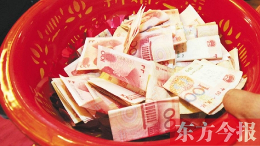 鄭州娶媳婦土豪版彩禮 百元鈔票稱三斤