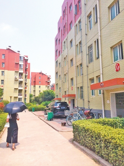 6月22日上午,大河報記者來到位于新鄭市溱水路和炎黃大道交叉口西北角的“暢馨園”小區(qū),該小區(qū)內(nèi)有很多公共租賃房。同其他小區(qū)不同,在該小區(qū)的很多房子上都貼有“人才”兩個字。