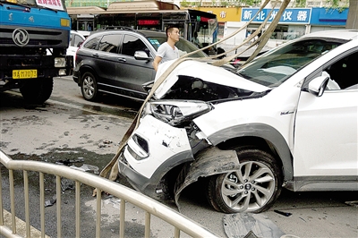 目擊者范先生稱:“當(dāng)時由南向北是綠燈,由東向西是紅燈,白色轎車在華山路上由南向北直行,路過我身邊時,轎車前有一老太太手里提著東西也在由南向北走,轎車速度有點兒快,我看到司機在車內(nèi)亂晃腦袋,看樣子司機像是突然犯病,行為很不正常,車子像瘋了一樣向東北角開去,還有可大的剎車聲?!?/p>