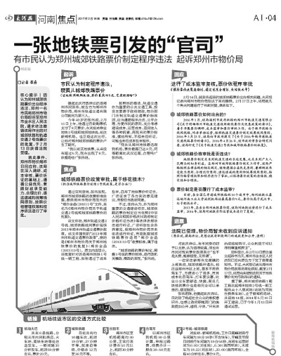 城鐵8元票價引質(zhì)疑 市民起訴鄭州市物價局