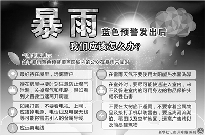 對(duì)于雨天不得不出行的市民,市防汛辦工作人員也提醒,一些安全常識(shí)要牢記,如雷雨天氣中不要在涵洞、立交橋下、低洼地、較高的墻體、樹木下避雨,有警示標(biāo)志的地段切勿進(jìn)入。遇到打雷,行人應(yīng)停止行走,兩腳并攏中蹲下。汛期當(dāng)橋涵、隧道積水超過30厘米,普通道路積水超過40厘米時(shí),交警部門將封閉相關(guān)路段交通,設(shè)置禁止通行標(biāo)示牌。市民如遇鐵路立交橋下積水,應(yīng)留意水位標(biāo)識(shí)和相關(guān)警示,在水深未知的情況下勿冒險(xiǎn)涉水。在強(qiáng)降雨過程中,為加快退水,市政人員會(huì)掀開井蓋,市民要留意警示標(biāo)志,繞開窨井,確保安全。若車輛不慎掉入深水區(qū),切勿打開車窗或試圖打開車門,應(yīng)努力呼吸,找好準(zhǔn)備逃生的門把手,等水慢慢涌入車內(nèi),即將漫到車頂時(shí),深吸一口氣,然后屏氣打開車門迅速游出。