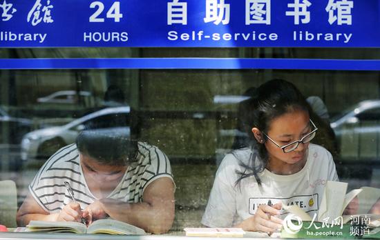 WiFi、空調(diào)、桌椅……這里不是咖啡廳,卻座無虛席。正值暑假,河南鄭州的24小時自助圖書館內(nèi),坐滿了前來看書和借書的市民,再掀閱讀熱潮。
