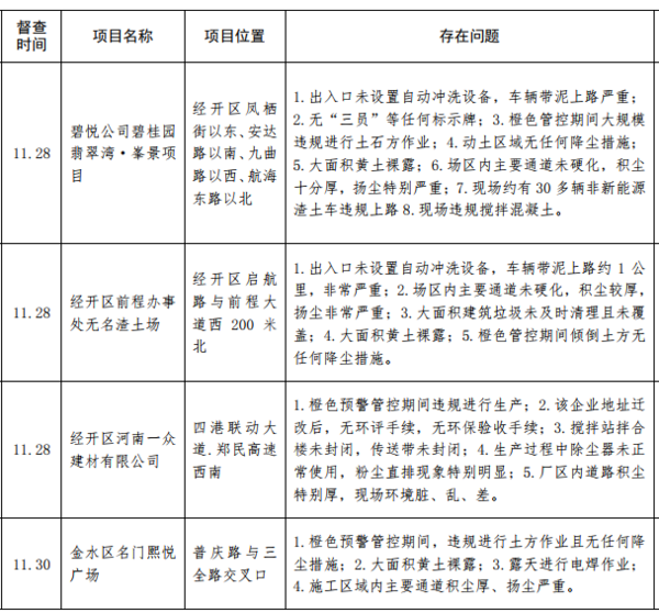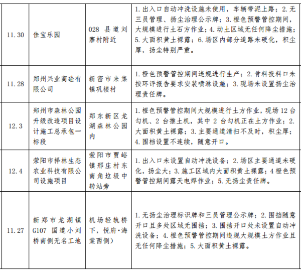 12月7日,記者從鄭州市環(huán)境污染防治攻堅(jiān)辦了解到,11 月 27 日至 12 月 3 日,鄭州市環(huán)境污染防治督導(dǎo)組重點(diǎn)對全市"封土行動(dòng)"方案、橙色預(yù)警管控措施落實(shí)和 30天沖刺行動(dòng)方案落實(shí)情況進(jìn)行督導(dǎo)檢查。