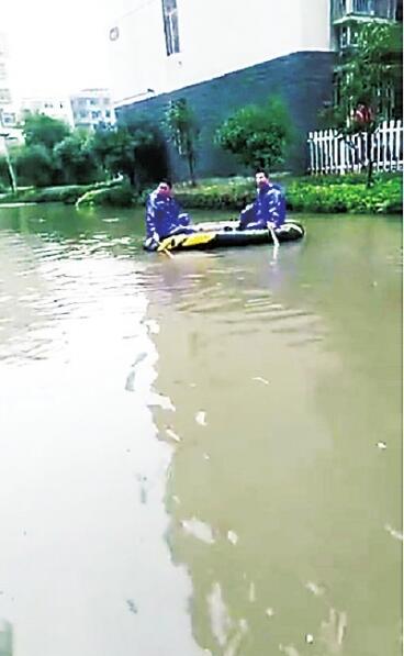街道積水到膝蓋,小區(qū)內(nèi)劃船出行