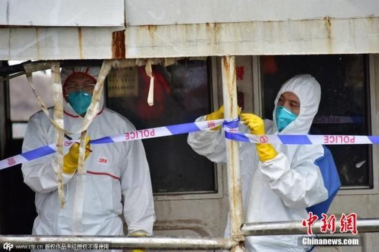 2015年6月8日,湖北荊州,工作人員對“東方之星”輪逐層逐艙進(jìn)行最后的排查清理。14時10分,驗(yàn)收通過后長江公安警方拉上了警戒線,這標(biāo)志著“東方之星”輪現(xiàn)場排查清理工作全部完成。圖片來源:CFP視覺中國
