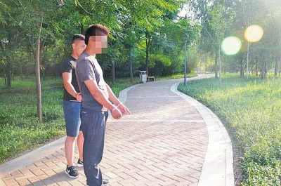 “嫌疑人向市區(qū)逃跑的可能性不大,很有可能向市外逃跑?!泵窬瘲畈嚼走叿治鲞厧ьI(lǐng)受害人駕車向南追找,胡培東負(fù)責(zé)在公園內(nèi)搜尋。同時,楊步雷向分局110指揮中心匯報,要求增派兩組警力包抄堵截。