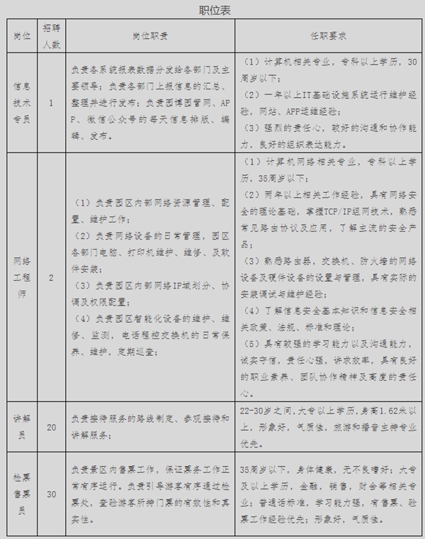 詳見附件《鄭州航空港園博園實業(yè)有限公司2017年公開招聘第二批工作人員職位表》。