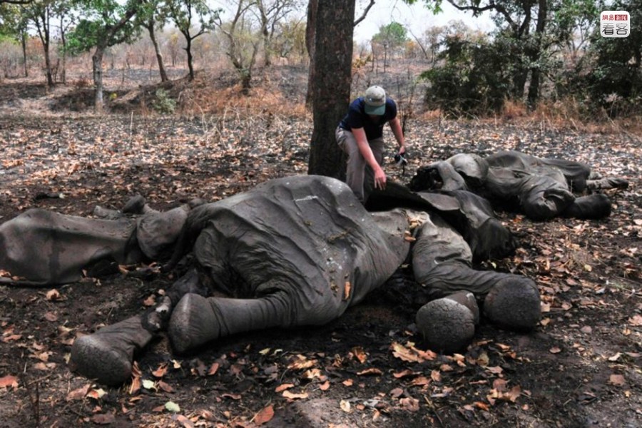1989年,聯(lián)合國CITES公約全面禁止象牙貿(mào)易,以遏制非洲大象被大規(guī)模殺戮的趨勢。但象牙走私、販賣的巨額利潤使得偷獵活動屢禁不止。有調(diào)查認為,中國是非法象牙貿(mào)易劇增的最重要因素。圖為一名國際愛護動物基金會成員在喀麥隆森林公園檢查一頭遭受獵殺的大象。截至2012年1月,當(dāng)?shù)丶s300-400頭大象被獵殺。CFP