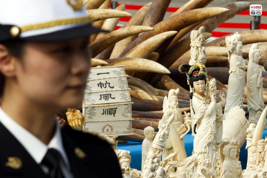 2014年1月6日,廣東東莞,中國國家林業(yè)局和海關(guān)總署集中銷毀了近年來在執(zhí)法行動中查沒的6.1噸象牙及其制品,是中國首次公開銷毀象牙。CFP