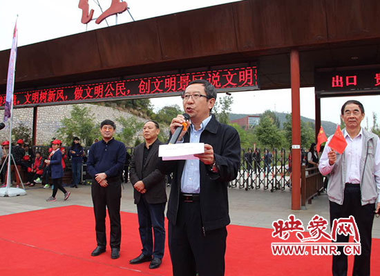 “在剛剛過去的十一黃金周,我們安陽旅游市場(chǎng)可以說是好事連連,紅旗渠榮登全國‘十一’旅游假期紅榜,被國家旅游局評(píng)為旅游市場(chǎng)秩序最佳景區(qū)。為便于大家參觀,今天有多個(gè)景點(diǎn)同時(shí)接待游客,并特意在紅旗渠景區(qū)為老人舉辦了歡迎儀式,相信安陽豐富多彩的旅游資源能給老年人留下美好而深刻的印象,在將來的日子里,吸引更多的游客走進(jìn)紅旗渠畔,走進(jìn)殷商古都?!笔新糜尉止ぷ魅藛T說。