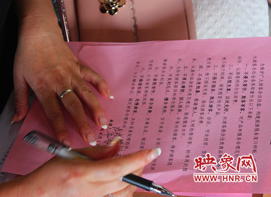 宣誓完后,參加宣誓的各鄉(xiāng)鎮(zhèn)、各有關委局、旅游景區(qū)、星級酒店、景區(qū)商戶、旅行社以及農(nóng)家賓館業(yè)主紛紛簽訂了《欒川旅游服務“八不”承諾書》。承諾內(nèi)容包括:不漫天要價,欺客宰客;不以假充真,以次充好;不強買強賣,欺壓游客;不態(tài)度粗暴,惡語傷人;不厚此薄彼,因人而異;不見利忘義,擅自違約;不虛假宣傳,誤導消費;不推諉扯皮,怠慢游客。