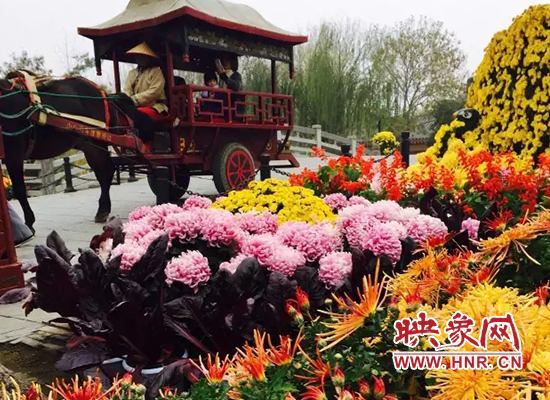 清明上河園滿園的菊花依舊艷麗繽紛、菊香四溢。紅的似火、黃的賽金、白的勝雪、粉的如霞,可謂是多姿多彩。