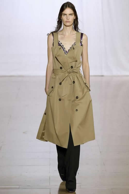 風(fēng)衣面料的吊帶長袍新鮮感十足,穿上它,你可以是花園里澆花的女主人,脫下之后,寶石鑲邊的胸衣一解沉悶,當(dāng)然,闊腿褲得是及地的。