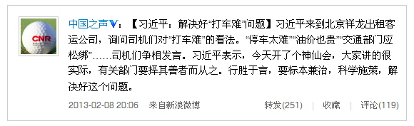 【習(xí)近平:解決好“打車難”問(wèn)題】習(xí)近平來(lái)到北京祥龍出租客運(yùn)公司,詢問(wèn)司機(jī)們對(duì)“打車難”的看法?!巴\囂y”“油價(jià)也貴”“交通部門(mén)應(yīng)松綁”……司機(jī)們爭(zhēng)相發(fā)言。習(xí)近平表示,今天開(kāi)了個(gè)神仙會(huì),大家講的很實(shí)際,有關(guān)部門(mén)要擇其善者而從之。行勝于言,要標(biāo)本兼治,科學(xué)施策,解決好這個(gè)問(wèn)題。