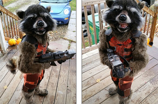 據(jù)悉,這件套裝仿照電影《銀河護(hù)衛(wèi)隊(duì)》里的漫畫(huà)角色“火箭浣熊”制作而成。該電影的導(dǎo)演詹姆斯·古恩(James Gunn)在網(wǎng)上看到后贊譽(yù)有加,稱“又一件超酷的萬(wàn)圣節(jié)服飾,大家真的是棒極了!”