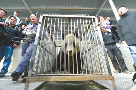 上午9時許,飼養(yǎng)員趁著“蜀蘭”早膳的時間對她進(jìn)行出行前的身體檢查。體重95.6公斤,體溫36.2度,血壓正常。