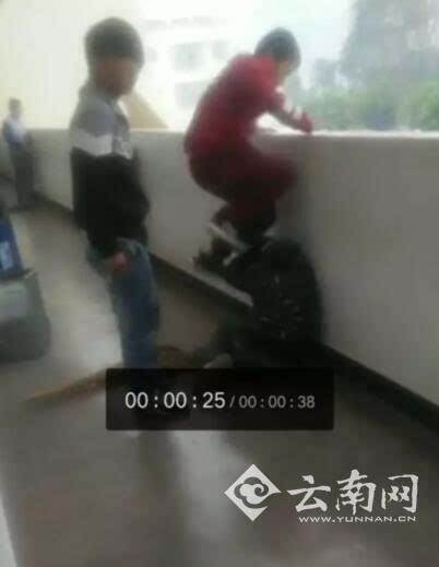 據(jù)云南網(wǎng)記者介紹,網(wǎng)友爆料的視頻中,一名身材瘦小的男孩在學(xué)校陽臺被兩人暴打,還被連續(xù)踢頭,一旁還有同學(xué)在起哄,盡管男孩被打到下跪,但打人者還是依依不饒繼續(xù)拳打腳踢,整個視頻長達1分24秒。在網(wǎng)友提供的第二段視頻中,此前被毆打的這名男生蜷縮在樓道內(nèi),而打人者人數(shù)也增至多人,除了拳打腳踢外,還用掃帚擊打他的頭部,部分學(xué)生在一旁圍觀和嘲笑。有網(wǎng)友表示小學(xué)生竟能如此心狠手辣,令人痛心。