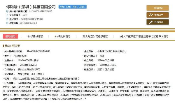 2016年9月,一家深圳公司注冊成功,名為“深圳市賺他一個(gè)億電子實(shí)業(yè)有限公司”,這家注冊資本100萬元。