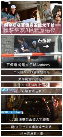 早前便有消息爆料稱,阿Sa(蔡卓妍)和“百億麻將館太子爺”石恒聰于今年4月開始戀愛。近日,另有媒體拍到阿Sa連續(xù)兩晚在男方家過夜,再添相戀證據。