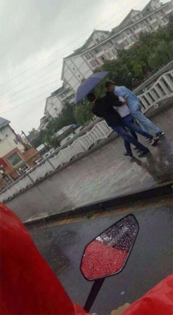 當日下午6時許,小唐正騎著電動車前往商家取餐,途經(jīng)都江堰市一環(huán)路柏條河橋路段時,橋上人行道的兩名可疑男子引起了他的注意。“當時,有兩個男的撐著傘,兩人之間還架著一個年輕的女娃娃?!拔耶敃r已經(jīng)過他們了,但聽到一個男子說‘你不聽話就弄死你’,我一下就覺得不對勁了?!毙√平榻B,隨后他放慢了車速,來到了三人的身后側(cè)方位置,慢慢地跟隨在后方,同時掏出手機,拍下了三人的照片?!爱敃r想這個女娃娃肯定是遭到了綁架,拍照可以作為證據(jù)。”