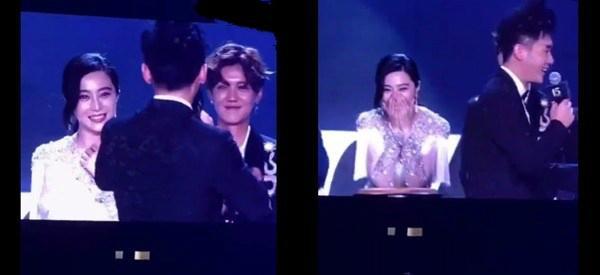 在進(jìn)行到競標(biāo)捐款環(huán)節(jié)時,李晨看著范冰冰清唱王力宏的《唯一》,借由歌詞“你就是我的唯一,獨自對著電話說我愛你,我真的愛你”的深情告白,“范爺”瞬間變成“范害羞”,捂臉大笑起。站在一旁的鹿晗不停拍手為“大黑?!睉?yīng)援,不知道有沒有被虐到???