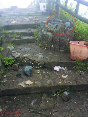 另?yè)?jù)隊(duì)長(zhǎng)羅燦輝在山頂上察看發(fā)現(xiàn),山頂有多塊巨石被雷電擊碎散落在地面上。其中有一塊被擊碎的巨石,后經(jīng)證實(shí),就是事發(fā)時(shí)王女士所站的區(qū)域。
