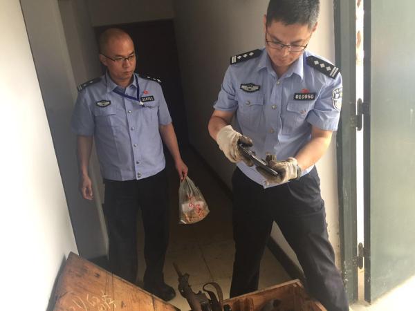 周向陽(右)在相關(guān)單位檢查清點(diǎn)槍支。 本組圖片 南京警方提供
