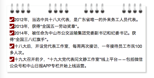 在中山工作的11年,只有兩三個春節(jié)回家,其他時間都在單位陪伴員工度過。成為市公交運輸集團黨委副書記后,我感覺身上的擔(dān)子更重。但我不怕困難,我開設(shè)了黨代表工作室,每周兩次接訪,傾聽來自員工和市民的訴求,特別是外來務(wù)工人員的訴求。
