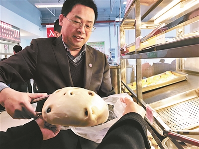 而當(dāng)初推出大饅頭的想法源于他和朋友在一次聊天中聊到了小時候過年才能吃到的大饅頭。他當(dāng)時就想,山東棗饅頭因?yàn)榭诟泻?,老少皆宜,要不就在食堂也推出這種饅頭,換換花樣讓更多的學(xué)生能因?yàn)榛臃聬凵铣浴笆程谩薄?/p>