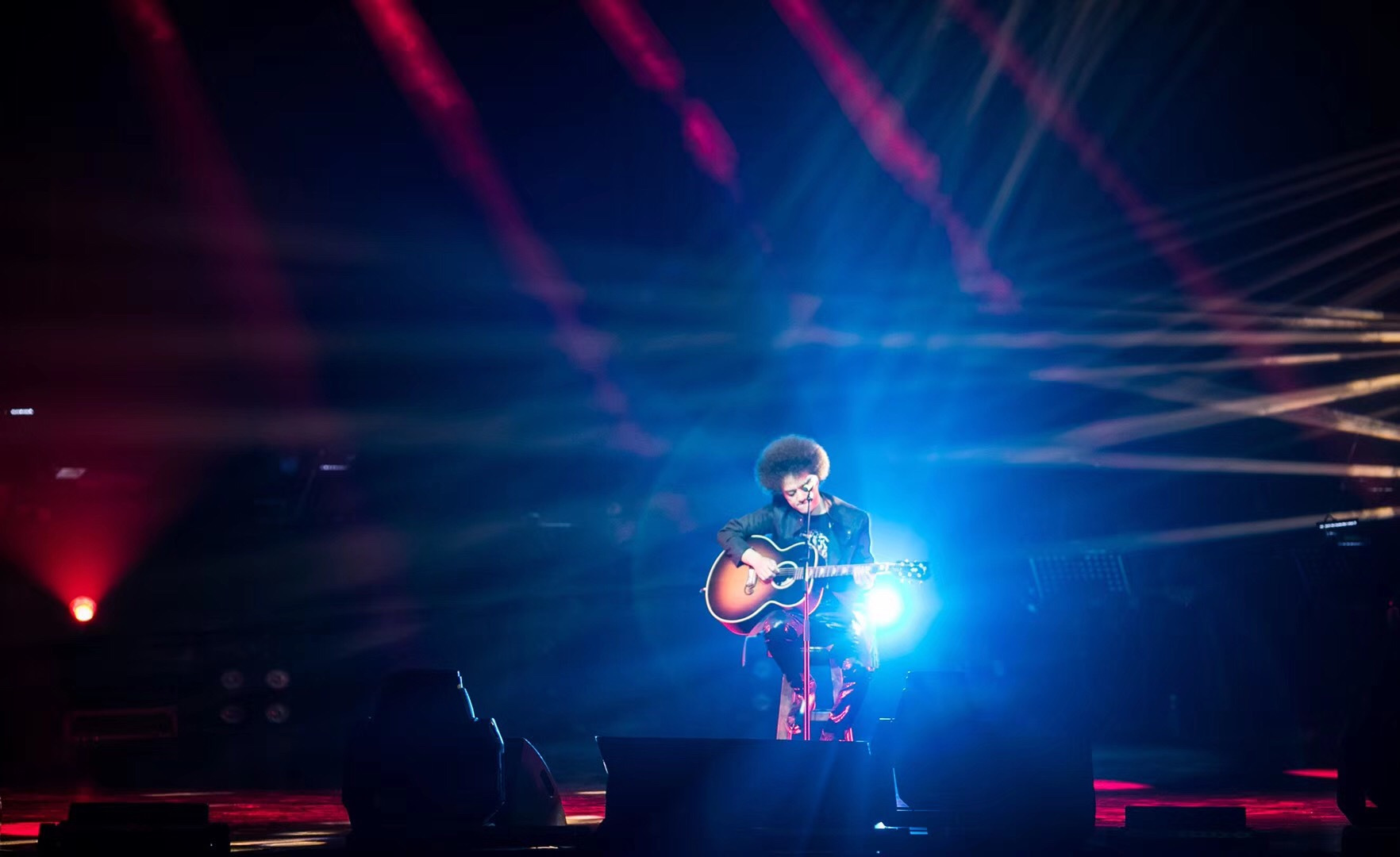 雖然是首次開演唱會,但是絲毫難不住在樂壇闖蕩十幾年的“老司機”趙英俊。演唱會以《悟空傳》拉開序幕,熱血燃情的歌詞和旋律瞬間驅走冬日的寒冷,點燃了現(xiàn)場氣氛。演唱會上,趙英俊除了演唱了代表作《大王叫我來巡山》、《守候》、《方的言》等代表作,也演唱了為王菲寫的《清風徐來》和為李宇春寫的《唐人街》,更是首次翻唱崔健《一無所有》、鮑勃迪倫《敲開天堂之門》等經(jīng)典曲目。
