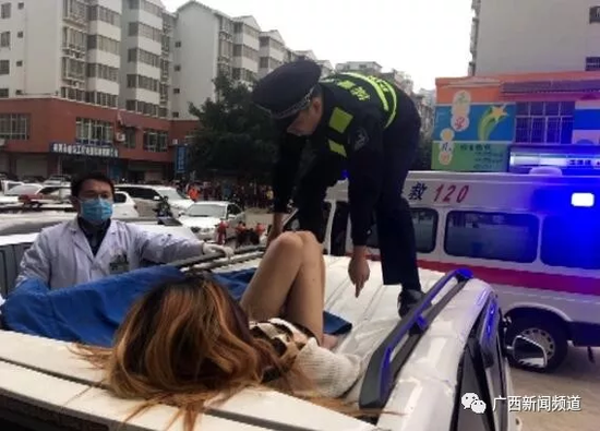 覃警官稱(chēng),年輕女子由于受傷嚴(yán)重,無(wú)法言語(yǔ),幾次掙扎著想坐立起來(lái)。他勸她別動(dòng),等待醫(yī)護(hù)人員。隨后,120醫(yī)護(hù)人員和城北派出所民警也趕到現(xiàn)場(chǎng),年輕女子被抬上救護(hù)車(chē)送往醫(yī)院搶救。到醫(yī)院后,城北派出所民警立即協(xié)助醫(yī)院辦好了相關(guān)入院手續(xù)。