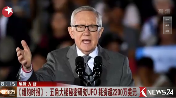 中新網(wǎng)12月18日電 綜合報(bào)道,自從1947年美國新墨西哥州羅茲威爾不明飛行物體(UFO)墜毀事件后,外界一直猜測(cè)美國政府曾接觸和研究“外星人”,但當(dāng)局多年來堅(jiān)決否認(rèn)。然而,美國國防部方面近日承認(rèn),曾于2007年至2012年間,應(yīng)民主黨前資深參議員里德等多名議員要求,秘密撥款展開“先進(jìn)飛行威脅辨識(shí)計(jì)劃”,專門調(diào)查軍方匯報(bào)的目擊UFO事件。這是美國當(dāng)局首次承認(rèn)存在相關(guān)計(jì)劃。