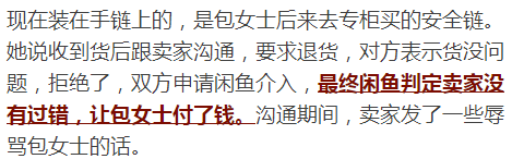 上個(gè)月二十幾號(hào),包女士在閑魚(yú)上買(mǎi)了一條潘多拉安全鏈。她說(shuō),騷擾電話是在這之后出現(xiàn)的。潘多拉是一個(gè)飾品品牌,顧客可以買(mǎi)各種配件,隨意搭配,她的手鏈當(dāng)時(shí)就差一條安全鏈,在閑魚(yú)上看到這個(gè)只要179塊錢(qián),而專柜要兩百多,于是在閑魚(yú)上下了單,收到貨后,她覺(jué)得東西有問(wèn)題。