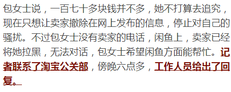 關(guān)于安全鏈的真假,以及為什么同一個(gè)賣(mài)家會(huì)有多個(gè)賬號(hào),淘寶方面沒(méi)有回復(fù)。包女士向我們反饋說(shuō),閑魚(yú)方面已經(jīng)聯(lián)系她,說(shuō)是封停了賣(mài)家的所有賬號(hào),出售她孩子的信息,已經(jīng)搜不到了。